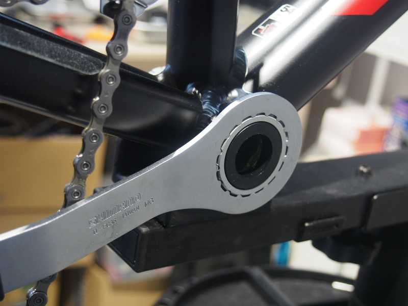 クランクも一度取り外し、BBのトルクチェックをいたします。圧入タイプの場合は音鳴り防止の為にグリスを適切なものに塗り替えます。