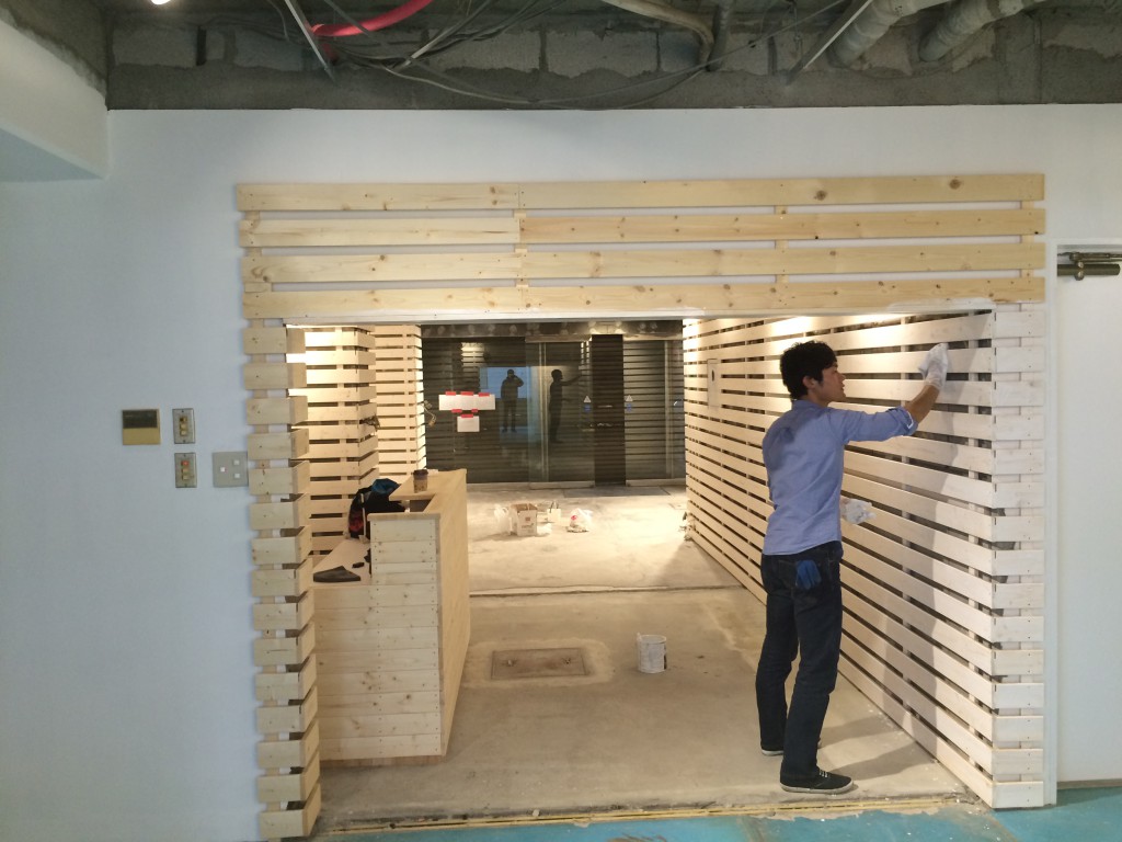 設計士の先生から、自分達でペンキを 塗った方がお店に愛着が出るのでやりましょう!との提案を受けスタッフ全員でペイントしてるんです。